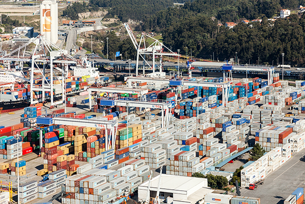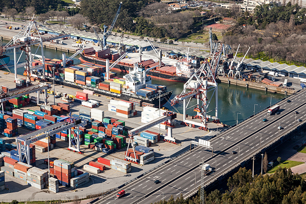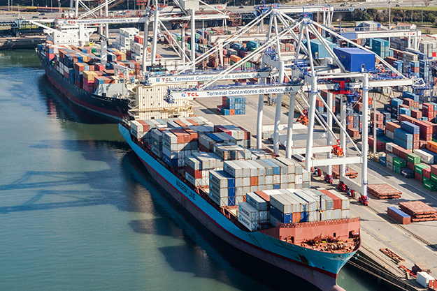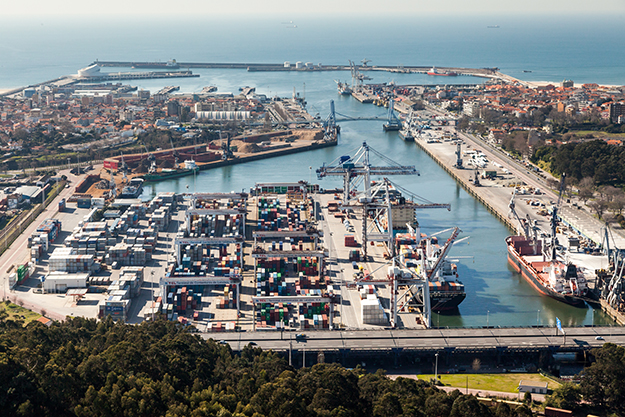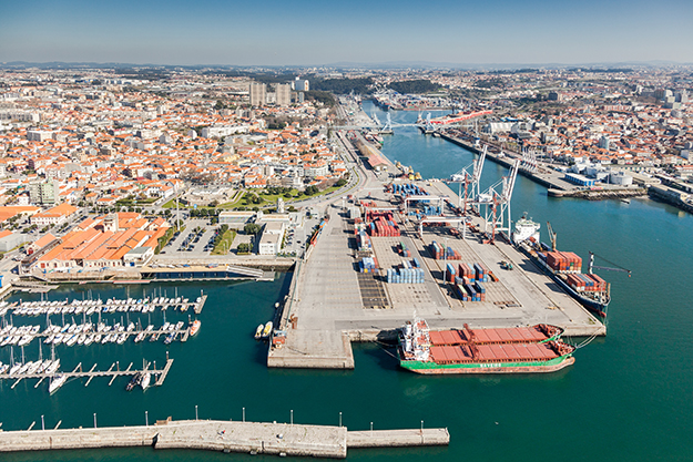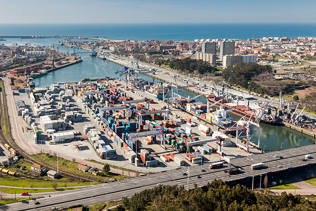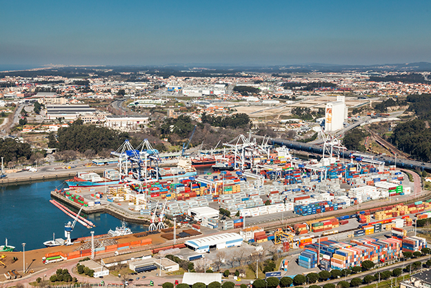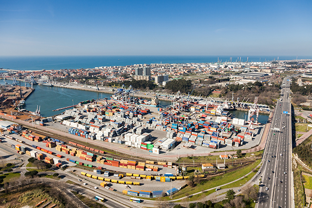 Main operational area of the port of Leixoes, with South Container Terminal in the foreground.