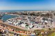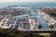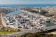 Leixoes port and sorrounding Matosinhos city seen from port approach.